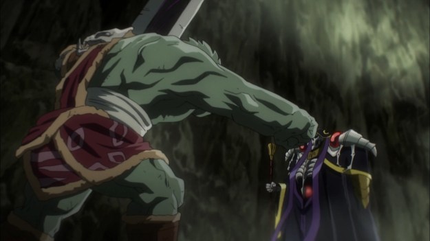 Watching Ainz bully a bunch of trolls, I’m hard-pressed to understand why this show is supposedly head-and-shoulders above something like How Not to Summon a Demon Lord. They both have dorks pretending to be badasses, and they both have women fawning over them. Overlord just doesn’t have wall-to-wall fanservice (most of the time). But hey, if the plot’s going to be this boring, it may as well give me some eye candy to look at. Sure, it all comes down to a matter of taste. As they often say, one man’s trash is another man’s treasure. Maybe watching Ains explaining to Lupisregina why Nphi and Enri are so important to him is entertaining to someone. Maybe watching Ainz absent-mindedly feel up Aura’s tiny waist and talk about sending her off to dark elf school is entertaining to someone. Maybe watching Ainz test a troll’s super healing ability is entertaining to someone. Maybe. But it’s all boring as fuck to me.
