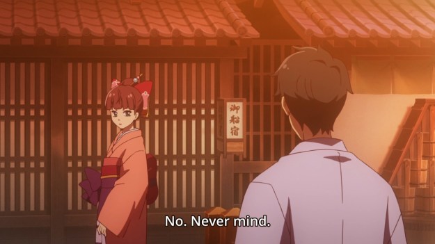 Holmes of Kyoto isn’t a terribly exciting show, but I guess it could be worse. It’s like batting .250 in the majors. Yeah, sure, you belong in the big show, but just barely. For instance, I like how when the characters talk, only their lives move. Their facial expressions are completely frozen. It looks so goddamn cheap that it’s almost funny.