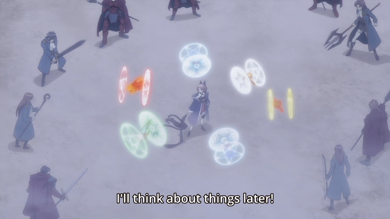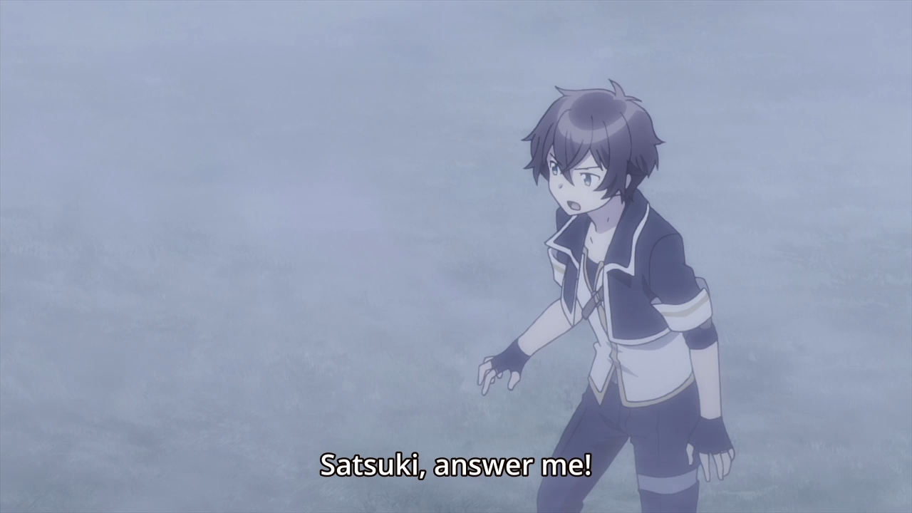 — We immediately cut to Satsuki and Haruto standing around in an inn room. See? I told you Elicia would just disappear from the episode. More importantly, Haruto wants to attempt a one-man rescue mission against a megaguild that numbers 3,000 strong! He tells Satsuki not to come along, though. Why? “Herp derp, something is obviously bothering you, so you can’t use your Sense properly. But am I going to try to figure out what’s bothering one of my closest childhood friends? Naaaaaaah.”