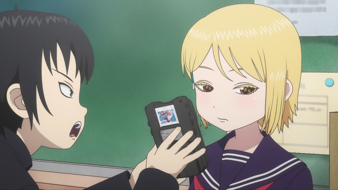 — He soon realizes, however, that he’s not alone. Koharu has cleaning duty, so she’s waiting for him to finish his apology letter and go home. Unfortunately, she makes the mistake of calling his portable console a Gameboy, so he goes on and on about stuff she doesn’t really know anything about. You never really want to get a single fact wrong around nerds. They’ll never let you hear the end of it.