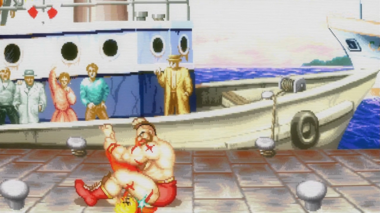 — Like Eve being tempted by the snake, Koharu decides to try her hand at Street Fighter II at Haruo’s behest. Oddly enough, she even picks Zangief as her character. When the guy asks her why, she tells him that Zangief looked strong.