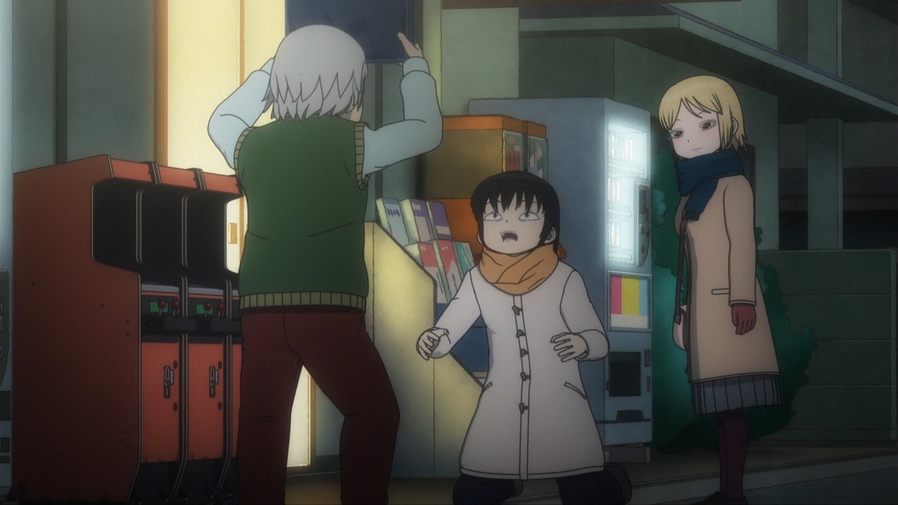 — Koharu returns home to find her grandfather installing some arcade cabinets right outside the family store. They apparently sell liquor there. Nevertheless, the old man would like to attract a few youths to the place. Odd. On the other hand, Koharu is concerned that the cabinets might attract delinquents. Again, it’s a cultural difference I can’t truly comprehend.