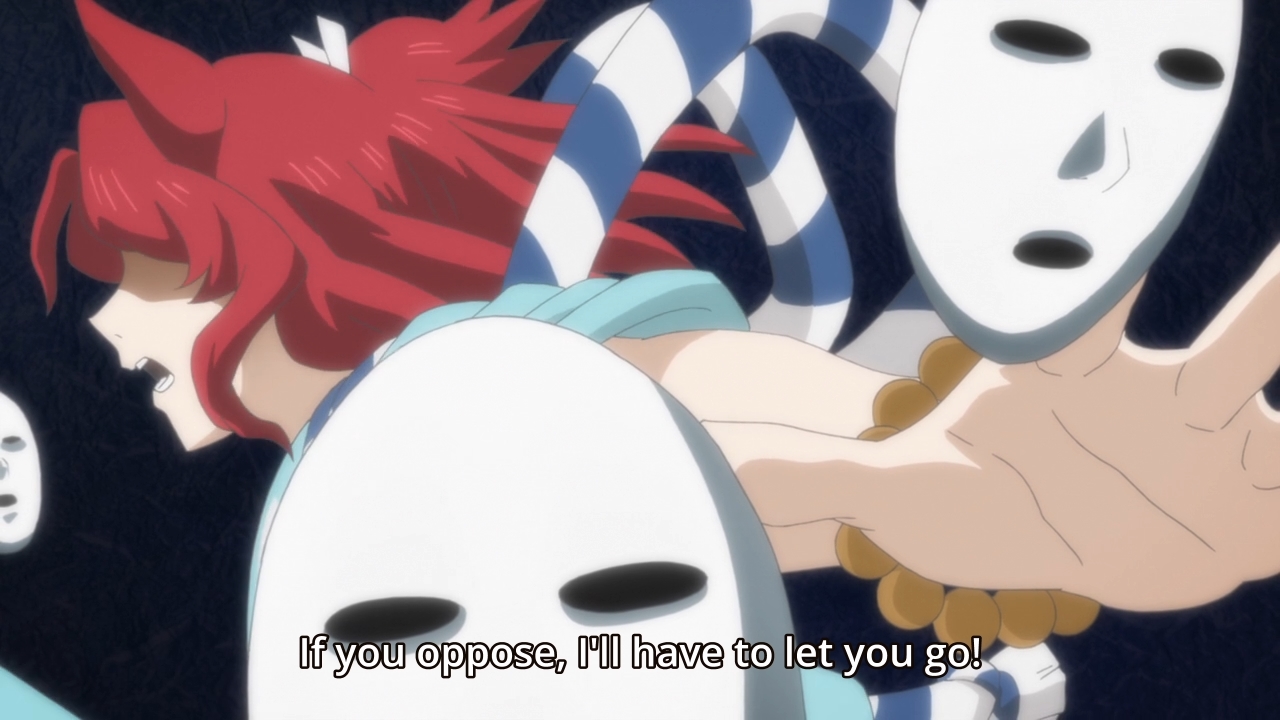 — When Aoi returns to her little hovel, she finds Odanna dutifully waiting for her. Without even asking her first, the ogre lord already knows what she’s up to. As a result, he offers to lend a hand. But wait, won’t the miasma hurt him?! No, Odanna claims, he’s a different type of ayakashi. Uh, sure…
