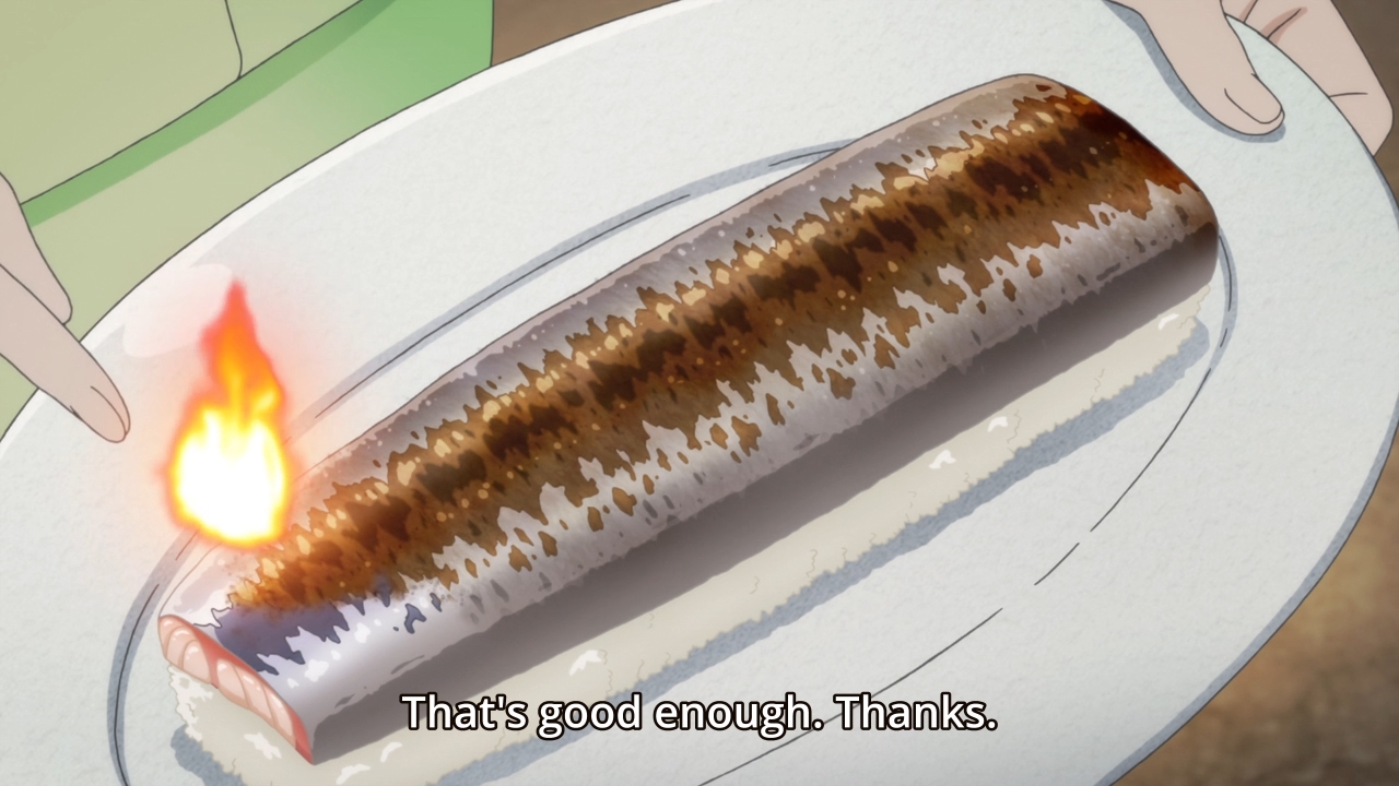 — Like I said, the piece of sushi was actually quite gigantic. Have you ever had a nigiri that big? Jiro can only dream of matching Aoi’s sushi-making prowess.