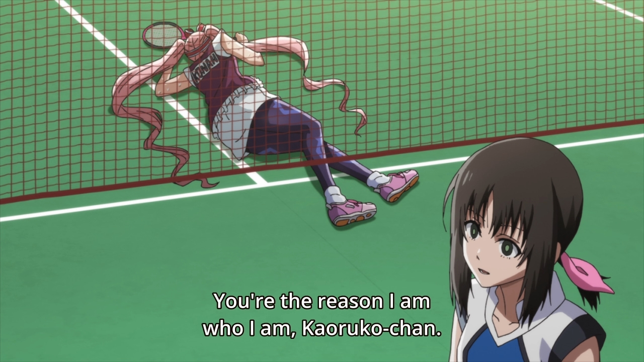 — After taking nearly all episode to watch Kaoruko lose the first game, we instantly see her lose the second game. As Ayano walks off the court, she has a look of disdain in her eyes.