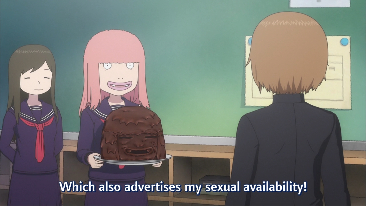 — After the commercial break, we learn that Haruo has given himself a cold. As a result, he’s not in school for Valentine’s Day. Despite all her frustrations with him, Koharu still wants to give him a box of chocolate. Their classmates joke that only an idiot would like Haruo. She can’t help but admit that this is true; she’s that idiot.