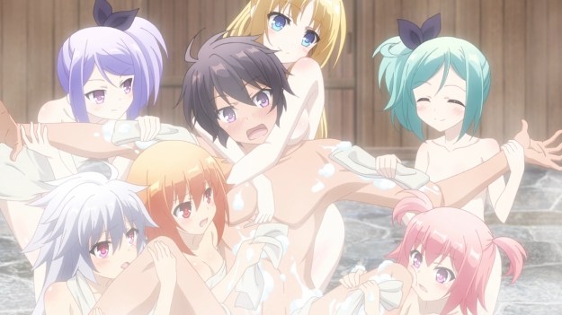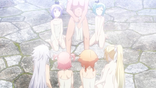 I’m gonna drop this show from this series of posts. It’s really not harem-like enough to bother. Sure, you have one guy surrounded by three girls, but Island is trying to tell a serious story. “Trying” is the operative word. For instance, in this week’s episode, Rinne recovers more of her memories. She and her Setsuna had washed up on a deserted island, and they tried to live blissfully together. But not only was the guy suffering from soot blight syndrome, he also became somewhat unhinged. He eventually convinced her to leave the island without him, and this was how she ended up back on Urashima. And now that she’s recovered her memories, she feels an immense amount of guilt. She wants to return to her Setsuna at all costs. This is assuming that her memories are even accurate.