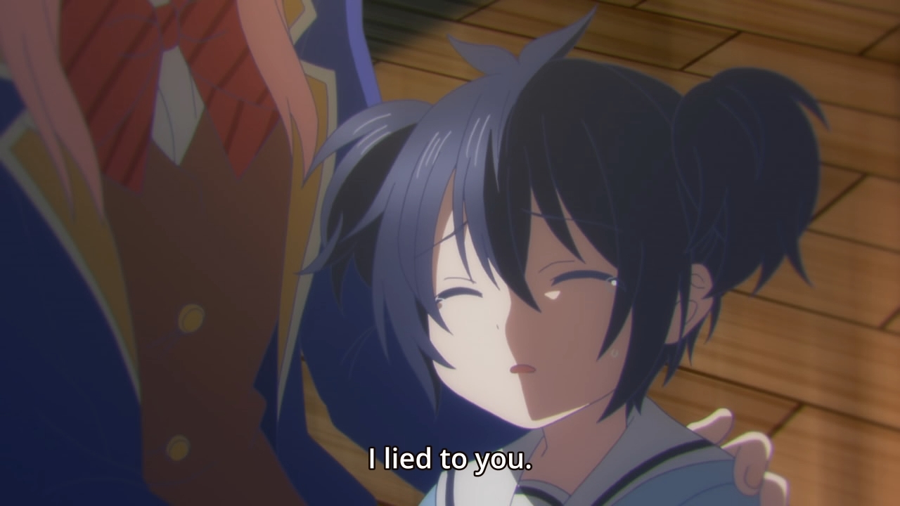 Taiyou freaks out just because Shouko stepped on one of Shio’s many missing person posters. Faced with a nosy stalker, Satou placates the girl by kissing her, saliva strand and all. Thanks Cruel Intentions! Our heroine then freaks out about it later because she thinks she has betrayed Shio for even lying about loving another girl. Likewise, Shio freaks out because she thinks she’s punished for lying about having talked to anyone that night. Last but not least, Asahi’s messed up about something. Just look at his eyes. Those eyes belong to a crazy person. He’s going to have to be crazy anyways, because I bet you anything the story will want to justify Satou butchering him to pieces later. What this show desperately needs is a straight man to counterbalance all these psychos. Just one normal person to give the story a bit of perspective. I’m hoping that Shouko can fill those shoes, but at the same time, I’m also wondering why I’m still watching this trainwreck. There’s nothing of value here. Abused people turn around and abused others. Adults suck. Children just want to be loved. Ho hum.