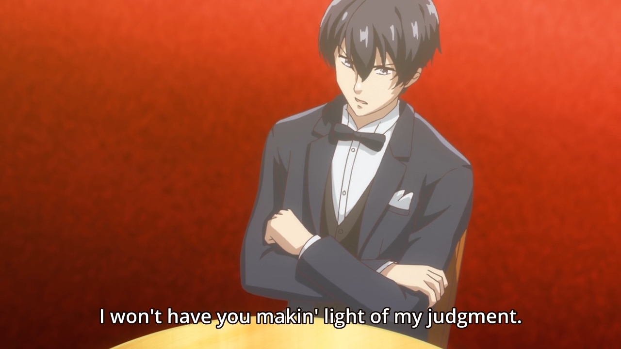 Seiji, the owner of the antique shop Kura, is throwing a birthday bash, and all the warriors are invited. As a result, Aoi gets to meet Rikyu, an overprotective kid who refers to Holmes as Kiyo-nii. He also spends the entire episode trying to convince Aoi to quit her part-time job at Kura. Y’see, he used to have her job until he had to go overseas. It’s obvious that he has some sort of obsession with Holmes that is borderline romantic if he doesn’t want our heroine in the picture. Anyways, his mother is in her 40s, and she’s dating Seiji. Mind you, the old man is turning 77, so that’s quite an age gap. Nevertheless, they’re both well into their adulthood, so whatever. Maybe this explains why Holmes seems to have his eyes for high school girl. Speaking of which, he seems to care more and more about what Aoi thinks of him. In return, this makes her blush over and over, but she’s not quite ready to admit to herself that she likes him. And yes, there’s a “mystery of the week” to unravel, but it’s really quite a minor one. Hell, I think it only took up ten minutes of the episode runtime, so I won’t bother going over it. The only important takeaway is that Holmes got super pissed during the whole ordeal, and he was worried that he might have frightened Aoi.