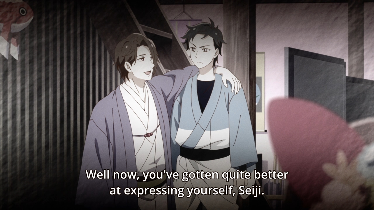 Guys like Seiji are so annoying. They’re all nice on the surface, but they turn into huge jealous monsters if you even dare to look in the direction of “their woman.” In this week’s episode, he hears rumors about a young master being a huge playboy. As a result, he’s being all protective with his dear “sister.” It also looks like he acted the same way with a man who vied for her attention in the past, i.e. a certain Sataro. Yeah, yeah, I get it: Seiji likes Oko. Well, then do something about it! Follow the young master’s example! Or heed your sister’s advice! Unfortunately, we’re just going to spend the rest of the series watching Seiji hemming and hawing over his sister. It’s kinda pathetic, honestly. Plus, I can’t believe Oko doesn’t know what’s bothering him either. How do you live with someone for so long and not notice how they act around you? Or how about the fact that the tsukumogami knows Seiji is in love with Oko, but they haven’t “accidentally” gossiped about it within earshot of the girl.