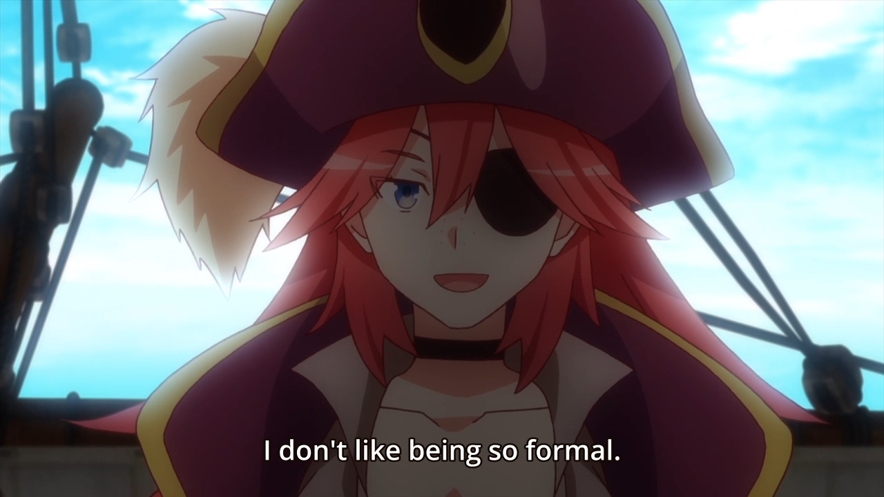 — In the last third of the episode, Haruto and his girls try again to retrieve his precious sword, but his pull out game continues to be sorely lacking. That’s when Clive shows up and offers his assistance. For some odd reason, the pirate lady does not look pleased. Hm.