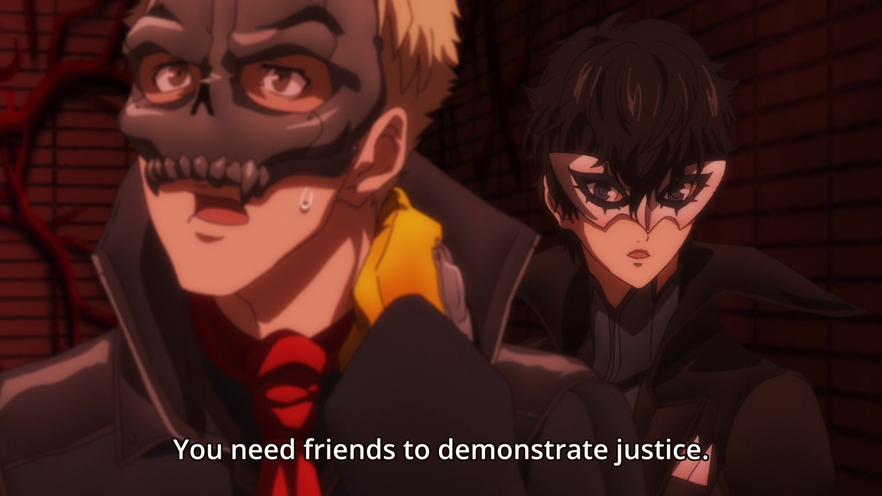— Morgana shows up with Beauty Thief, and the cat’s being obstinate even though it’s obvious that his friends want him back. I’m happy that his little tantrum doesn’t last very long. While I understand Morgana’s issues — he just wants to feel useful — like most problems in anime, it could have been solved with simple communication. Instead, the cat bottled up his emotions until it exploded. It’s especially damning because Ren has been nothing but a saint in this adaptation. Sure, if he was a careless jerk, I would understand Morgana’s inability to open up to his partner, but we’ve seen the hero literally attempt to reach out to the cat from time to time. Hell, I think anime Ren puts in a better effort than video game Ren.