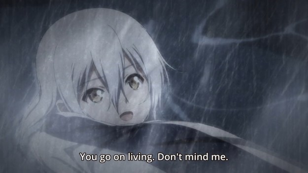 Oooh, Shouko’s gonna die. Why would Satou risk everything just for a girl who isn’t Shio? Think about it. But honestly, I find myself with less and less to say about this show as each week goes by. It would probably behoove me to drop the show sooner rather than later. Maybe next week will be the last…