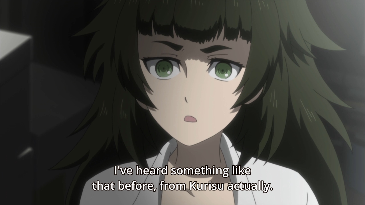 — Rintaro goes back in time in order to warn Suzuha and Mayuri about Leskinen, but he still ends up being too late. Well, you know what they say. If at first you don’t succeed, try, try, try again.