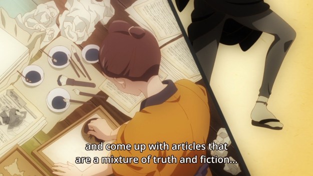 So the guy above concocted a bunch of tall stories just to sell newspapers? Sounds like the media in our times. Anyways, the mystery of week involves a so-called chivalrous bandit, but it really doesn’t interest me. Instead, I’m tuning in to see what unfolds between Oko and Sataro. Years ago, the guy protested his engagement to another woman. He pleaded with his mother that Oko was a better candidate for marriage. This doesn’t necessarily mean that the girl is willing to marry him, but there has to be a reason why she’s desperately searching for Suou, that incense burner. Unfortunately, this overarching plot only makes up a minuscule portion of each week’s episode. I’m not sure if I want to root for Seiji or not. He’s kinda gormless, so it’s hard to get behind such a character. Plus, if he really wants to waifu Oko, he should probably stop referring to her as his sister. After all, they’re not even related.