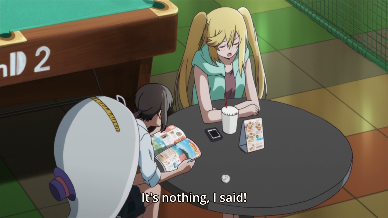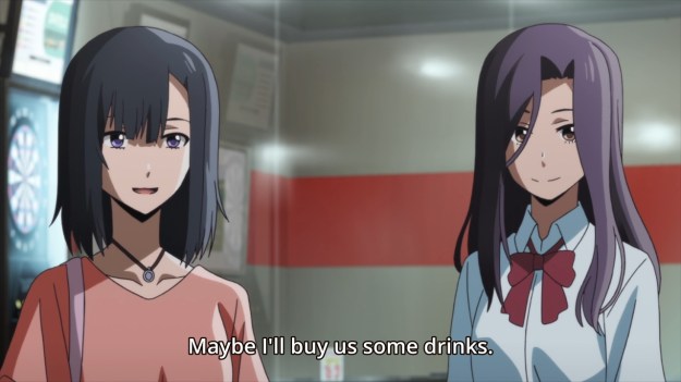 — Yuika and Elena look like two mothers looking after their two bratty children. At one point, they leave Connie and Ayano alone. Yuika knows that her teammate has something to get off her chest, but Connie almost chickens out at the last second. Luckily, there’s a mother sitting with her two daughters at a nearby table. The two daughters are also conveniently fighting with each other. Seeing the girls make up and leave happily with their mother, Connie finally gets the courage to talk to Ayano.