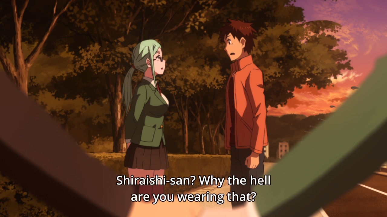 — And since this is anime, Nozomi’s first choice is the aquarium. Sadly, with all the nonsense happening around them, the place is closed for an indefinite amount of time. Soya can’t help but blame himself. Sure, he protected the city, but what did he manage to protect? In the end, people are fleeing anyways. In the end, the city is turning into a husk of its former self.