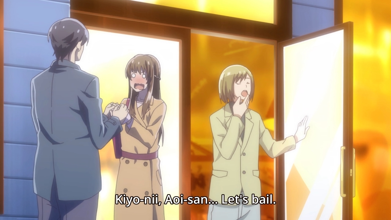 Near the end of the episode, Holmes gets a second chance to say something to Aoi only to be interrupted again. Do we really think he was going to confess to her, though? I mean, if it’s really that important, then why wait? Hell, it’s Christmas! This is the perfect time to confess! Just shoo Rikyu away and get the job done. It’s not like Holmes is lacking of confidence. It’s not like Holmes is one of those sniveling, weak-willed anime protagonists. Nevertheless, yet another episode of Holmes of Kyoto ends without much fanfare. The girl even tells us, “That night on Christmas Eve, I wonder what Holmes-san was going to say. I couldn’t find it in me to ask because I’d decided I’d draw a line.” Oh ho ho, is our heroine not as smitten with the guy as she lets on? Or has she been too recently hurt by her past relationship that she would rather put a temporary hold on all things romance for now? I get it. She’s a little gunshy. Nobody wants to put themselves out there just to be disappointed, especially after they just got cheated on. Well, if a confession is gonna happen, it’s gonna happen in the last episode anyways. Then again, the show is based off of a series of light novels, so I really have to wonder if we’ll even see a confession.