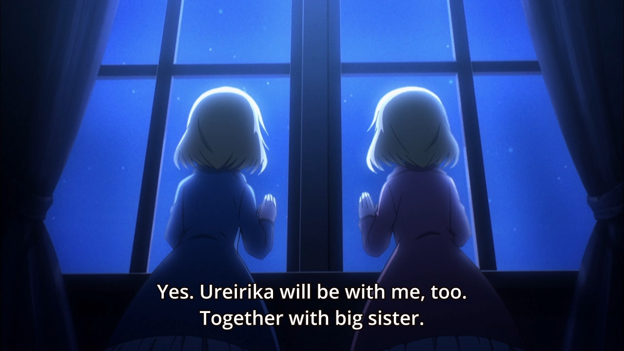 Setsuna ends up in a dystopian future in which 99.99% of the world has supposedly frozen over. There is only one inhabitable patch of land on the entire planet and — you guessed it! — it’s on our favorite island. Why have things turned out this way? We don’t know yet. Still, you’ll be glad to know that the three main girls have also reincarnated into this bleak timeline. Rinne is now a scientist/engineer of some sort, and she’s just as lolitastic as ever. We learn that she’s been working on a familiar-looking device. Maybe this one will send Setsuna back into the past. Sara, on the other hand, is a representative of a religion that pretty much controls the island’s entire operation. Sara is still nice, but her people definitely are not. Also, she’s all grown up and stuff. Yep. Last but not least, Karen is still a child. More importantly, she’s an “untagged” child. The Church keeps track of who’s allowed to procreate and who isn’t. Karen and her ilk are children that were never allowed to exist. Anyways, a bunch of pointless nonsense happens that I don’t care about because this depressing future is going to be rewritten anyways. All that’s important is that by the end of the episode, Setsuna finally remembers why he’s even here. Please don’t tell me that saving Rinne in the past will somehow avert an apocalyptic event in the future. Please don’t.