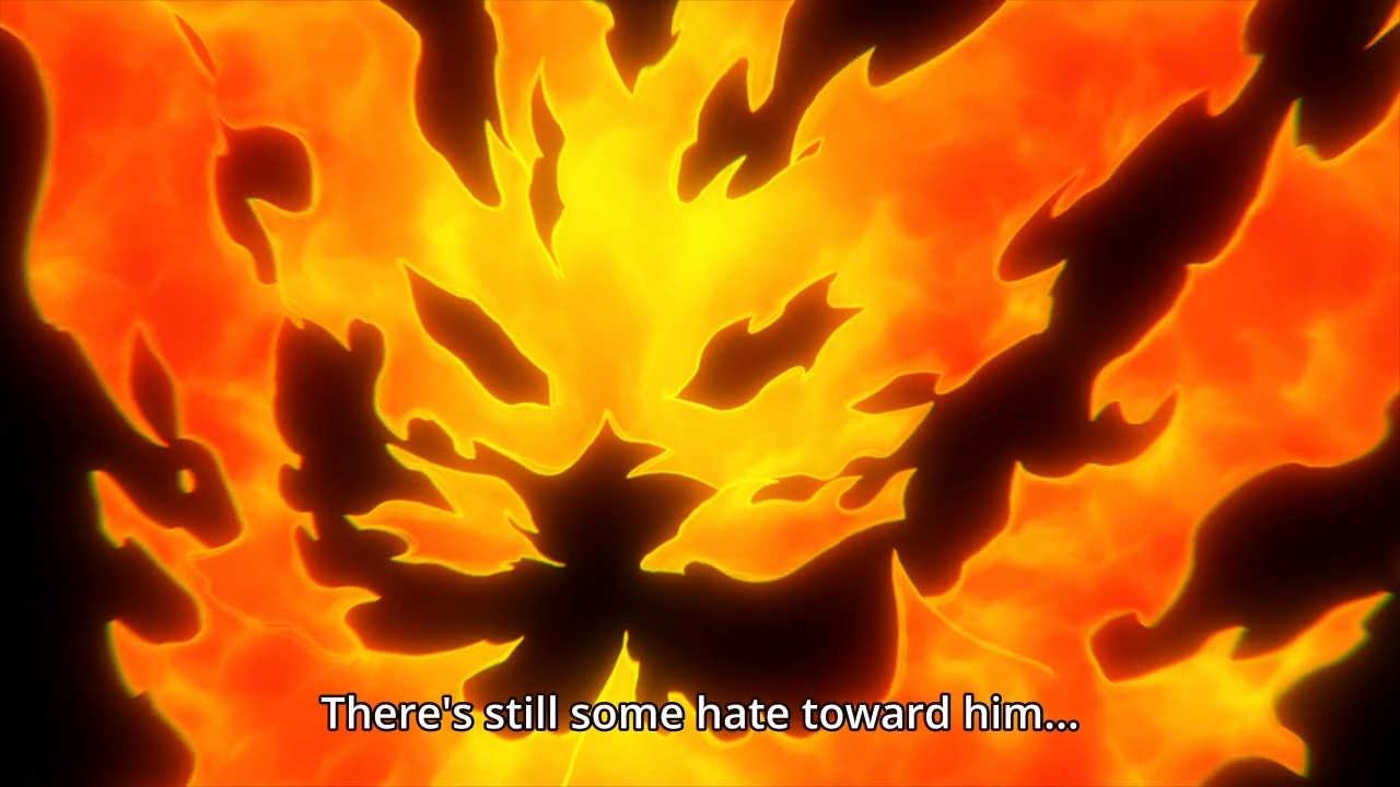 — Anyways, now that Todoroki and Yoarashi have thoroughly humiliated themselves, they finally decide to work together. By combining their Quirks, they manage to trap Gang Orca in a prison of fire.