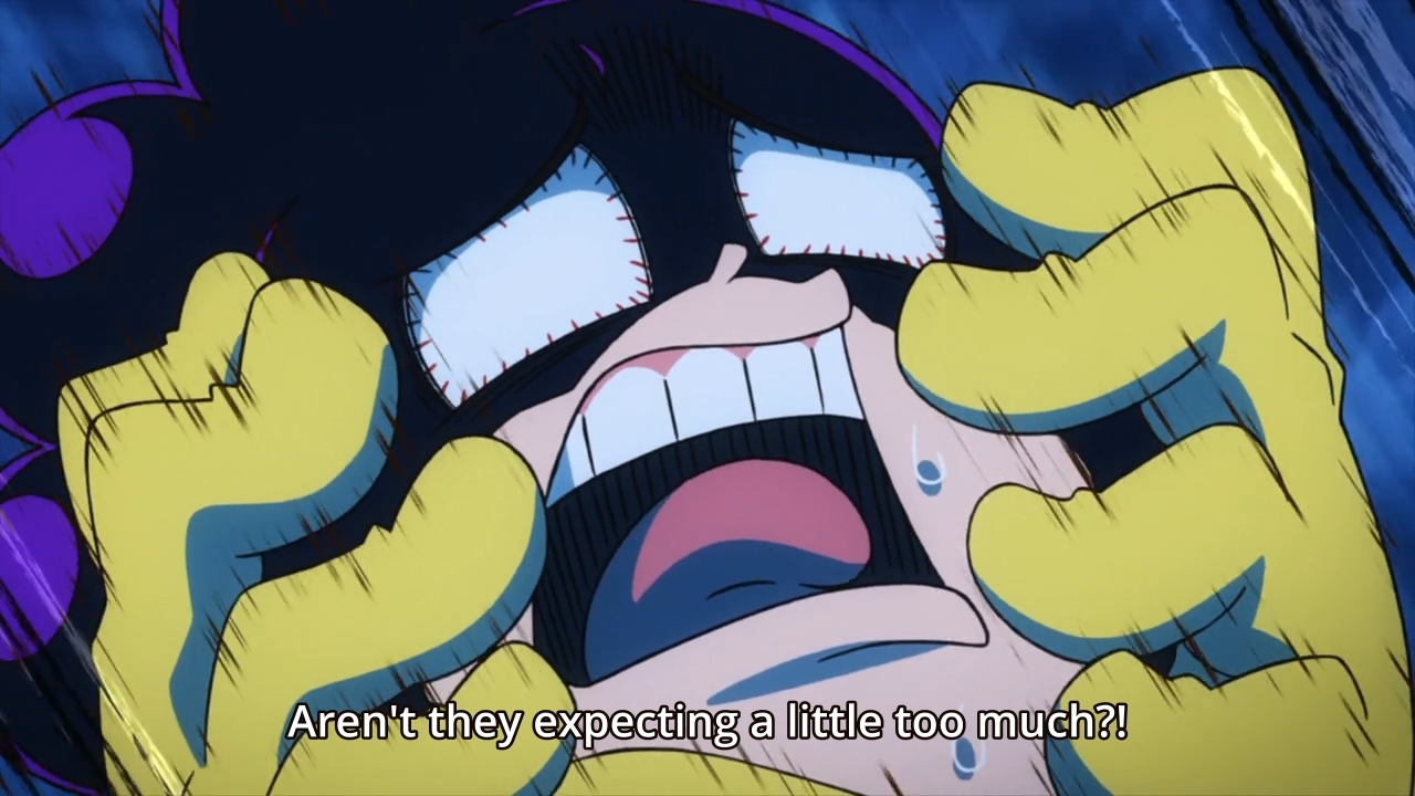 I’m with you. That argument was petty and pathetic; As much as I wanted Todoroki to get a bit more development as a character, this kind of a rehash of his daddy issues mid-exam isn’t what I was looking for and I genuinely do not care what the other guy’s issue was, but the episode is going to tell me anyway, through flashbacks mid-fight, and then it was so ridiculous it just made the whole thing taste pretty sour.