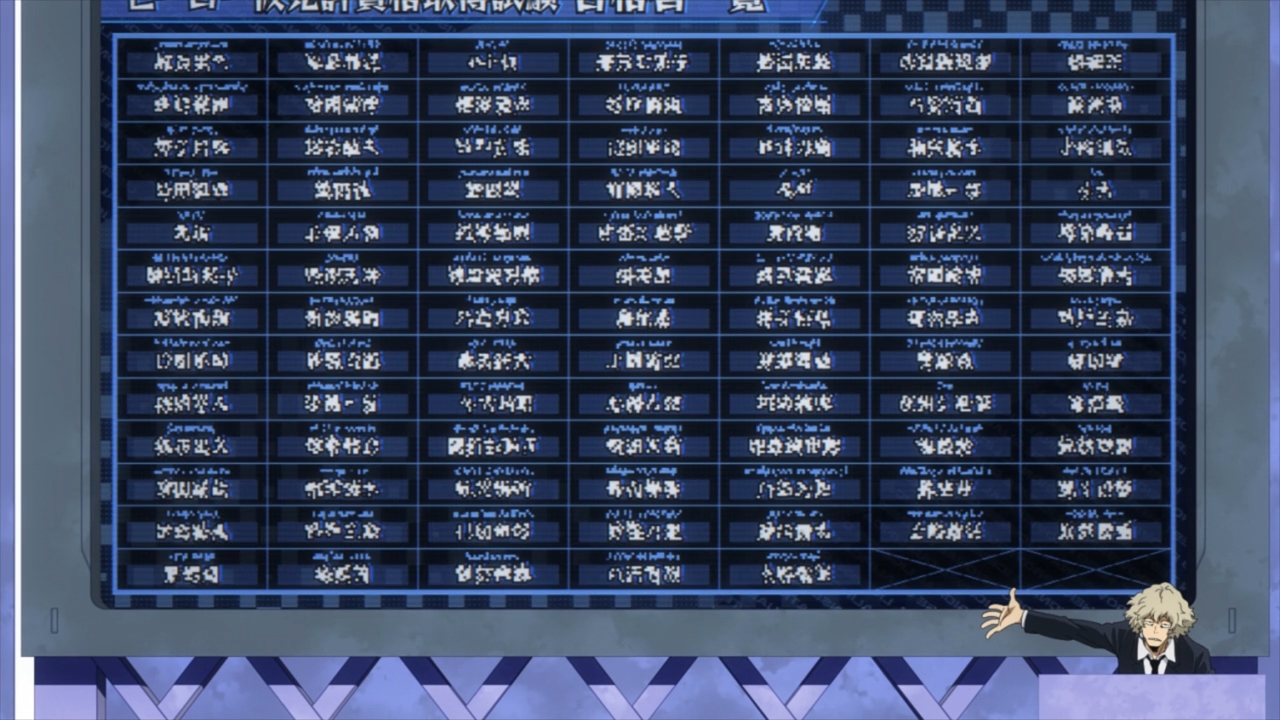 — The results have already been tabulated, and the kids can look up on the big board to see whether or not they’ve passed. And of course, this is where the episode comes to an end. But look, it’s obvious that Deku is gonna passed. He made one small mistake and that’s it. There’s no way Todoroki and Yoarashi can pass after that embarrassing display. As for Bakugo, I dunno… maybe he did something offscreen.