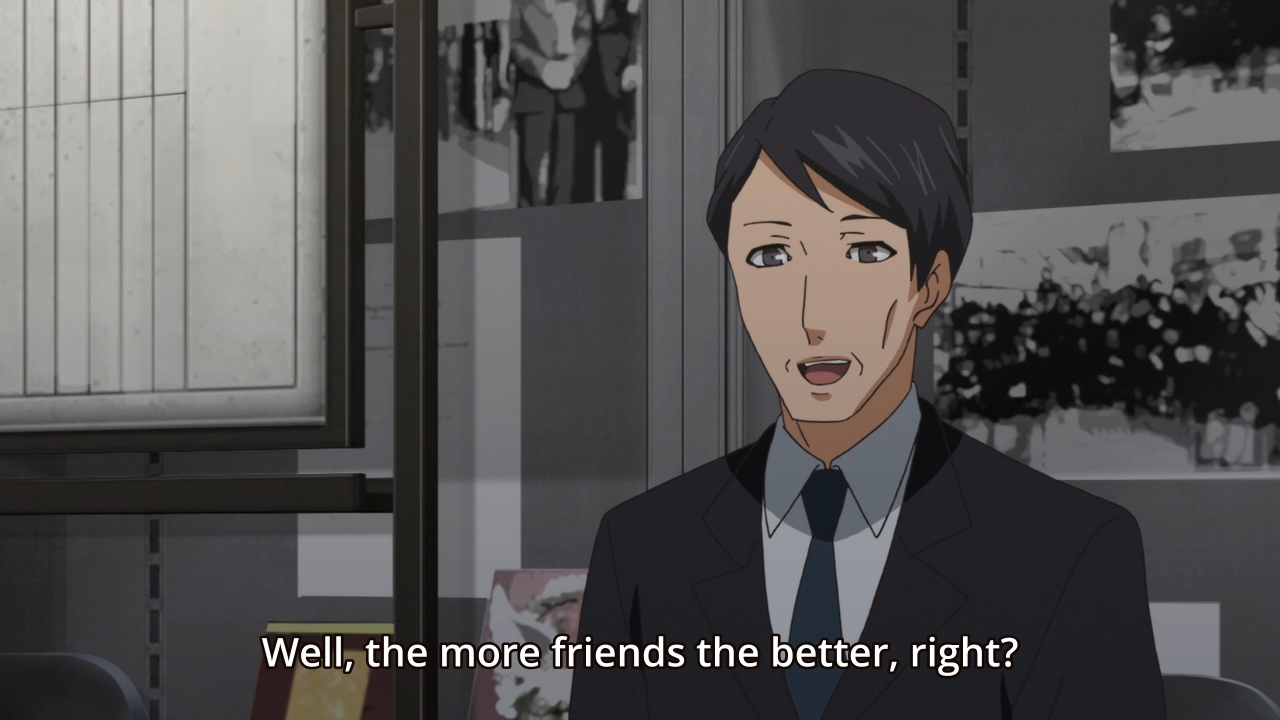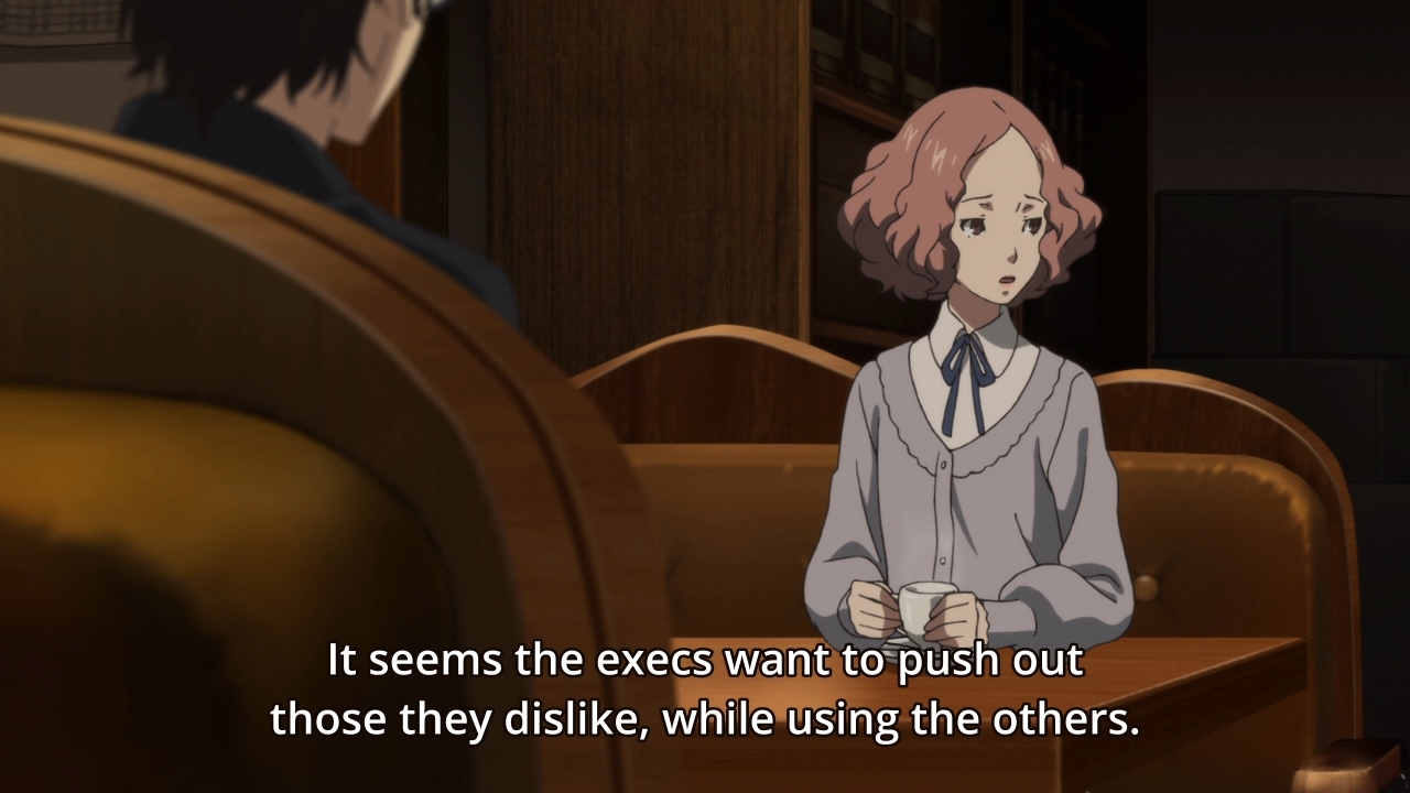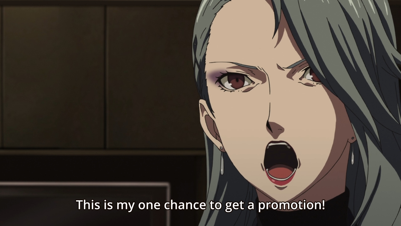 Yes, I can certainly imagine that it is very difficult to juggle a career and raising your kid sister on your own. But what stands out to me during this scene is when Sae goes, “You’re giving the case to someone as inexperienced as me?” Y’see, I had been thinking this whole time that she was experienced. I know she wants to shatter the glass ceiling and all, but a few extra scenes to establish her hardship would’ve really gone a long way. For instance, letting us see a flashback where she had been passed over for a promotion because of sexism or something. This would help us understand why she’s willing to compromise her values just to climb the ladder.