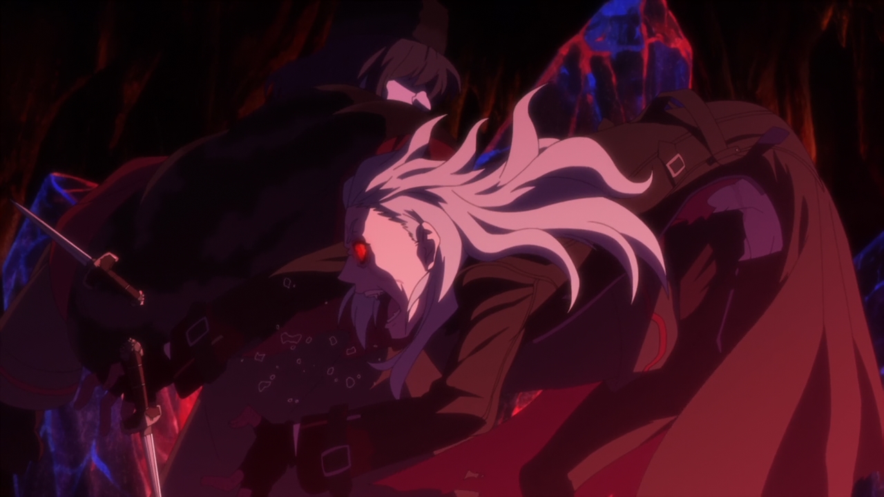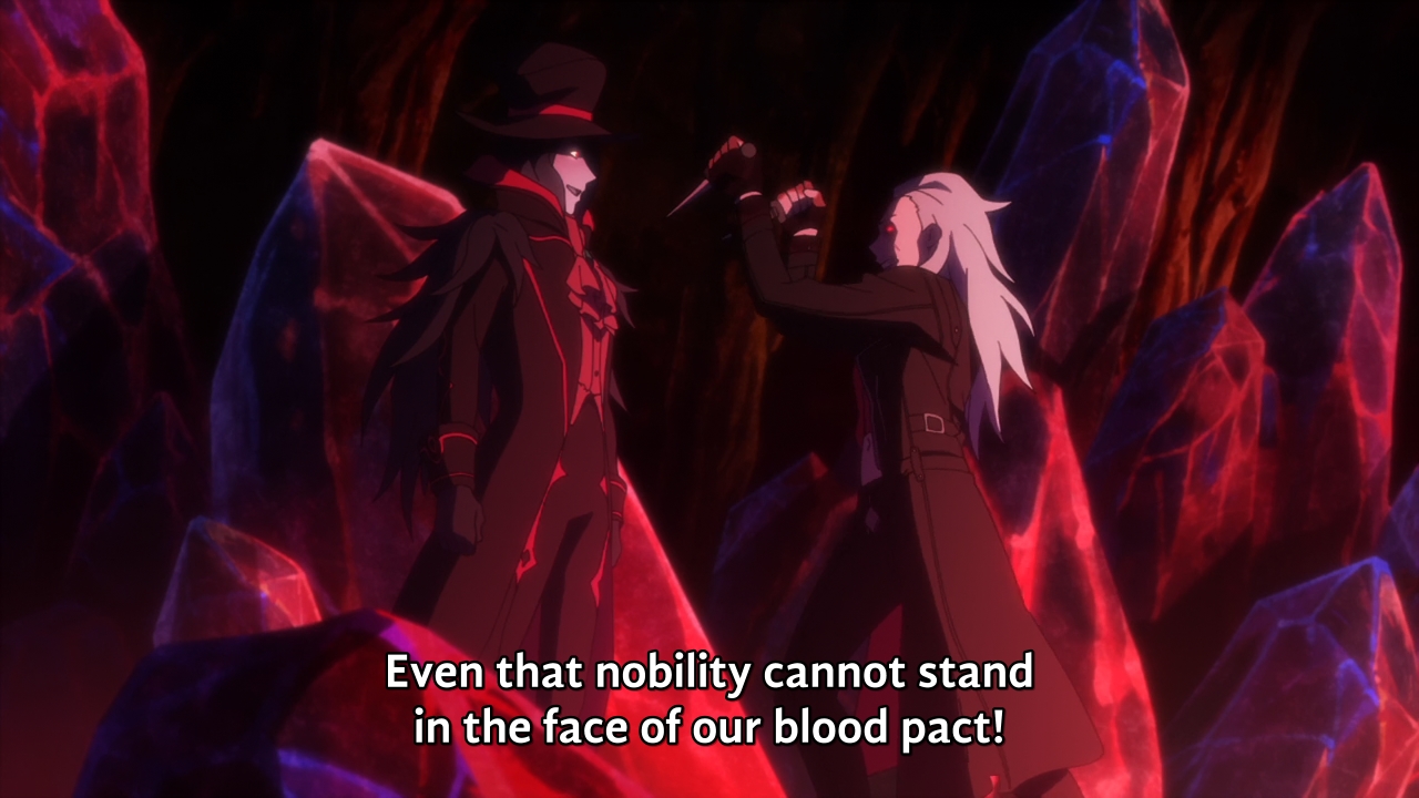 Yes, there are werewolf, vampire hunters, vampires, werewolf-turned-vampire, Imperial Japan, ancient civilization, not-piece-of-Eden, etc. But, lovesick schoolgirl and her mad and irrational, if not outright suicidal, quest of love are still the most interesting thing here. Keep on going, girl. Unless there are some batshit insane revelations in the later episodes, you are the only thing that I’m going to remember from this ultimately forgettable anime.
