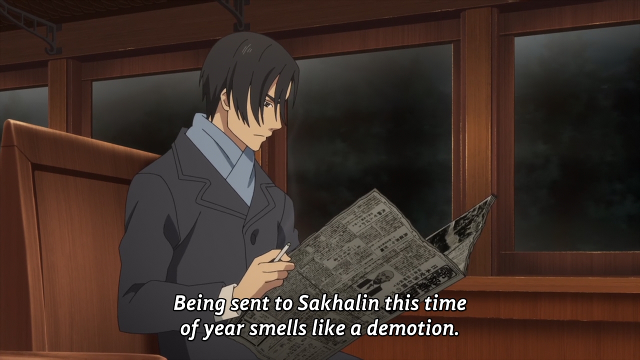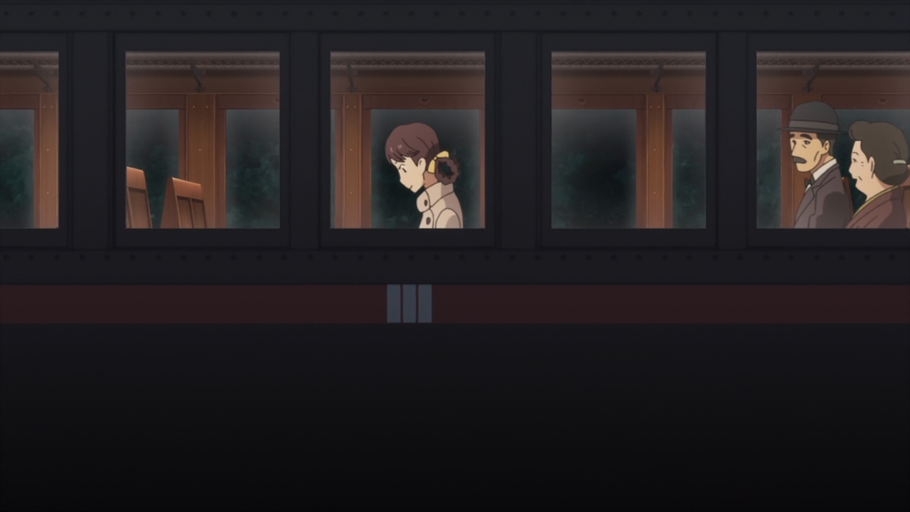 Ryoko is as crazy as I had hoped her to be. The girl tells her father that she’s headed for London, but she’s on the same train as Iba. Curious. Look, I doubt we’re going to see London anytime soon. I’m just curious to see what our spunky maiden hopes to accomplish in the middle of nowhere.