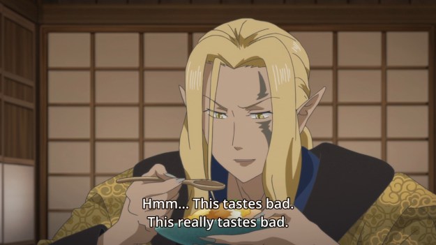 — Frustrated with her situation, our heroine gets up and tries to cook something — anything — to see if her taste is truly FUBAR. Yes, yes it is. So she goes, “I’m just someone with no real usefulness now.” Girl, that’s only true if all you can do is cook. That’s why you go to college to become a well-rounded per–… oh… oooooh. Psst, don’t drop out of school to frolic with the ayakashi. At least get your degree first, kids!