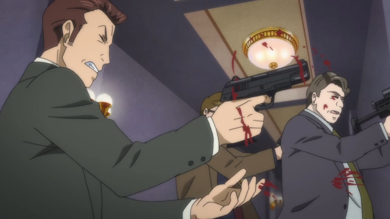 — Elsewhere, a generic, unnamed presidential candidate is brutally murdered. We turn to see that his killer is probably his own wife. She then offs herself, which prevents anyone from asking her any questions. Still, an autopsy should clue the authorities in on the fact that her mind was severely messed up. You might then argue that since Golzine also has allies in the police force, he might able able to suppress this information from getting out, but eh… it’s not a satisfying explanation.