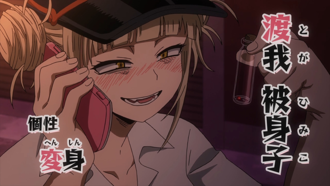 — We then cut to Camie walking into an alley and melting her face away to reveal that she was actually Toga all along. Oh. Oh, okay. No wonder Camie seemed to like Deku so much. So Toga’s actual Quirk is the ability to impersonate anyone. She just needs to drink their blood, and now that she has a single drop of Deku’s blood, she can do all sorts of fun stuff with that. Like what, though? Plus, what happened to the real Camie?