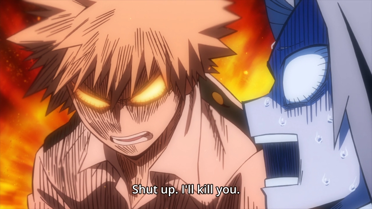 — Later that night, Bakugo calls Deku out for a private chat. What could go wrong? Narrator: “It went wrong.”