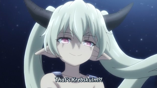 — Out of nowhere, this ugly thing shows up to greet Krebs-whatever. It then volunteers to murder every person around her, but she instantly turns him down. Remember, this demon lord only wants to eat biscuits, not humans. Look, if this demon lord isn’t cutting it, just replace her. Elect another demon lord. Make demon-lording great again.
