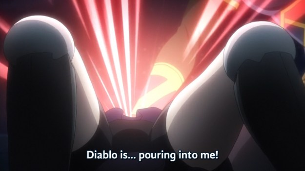 — After extracting the demon lord from Rem, Diablo carries her all the way back to the city. Uh, I sure hope he washed that hand first.