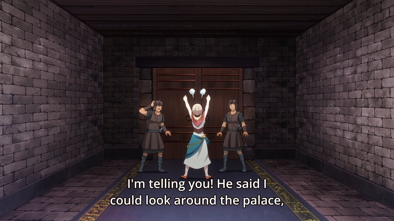 — In the second half of the episode, Steinthor and the Lightning Clan attacks again. Using his big bag of ancient military strategies, Yuuto appears to win again. Unfortunately, what our hero doesn’t realize is that the Lightning Clan and the Panther Clan have teamed up. So just when it looks like the Wolf Clan is about to win yet another battle, Christina reports that Loptr is leading a mounted army that numbers 10,000 strong.