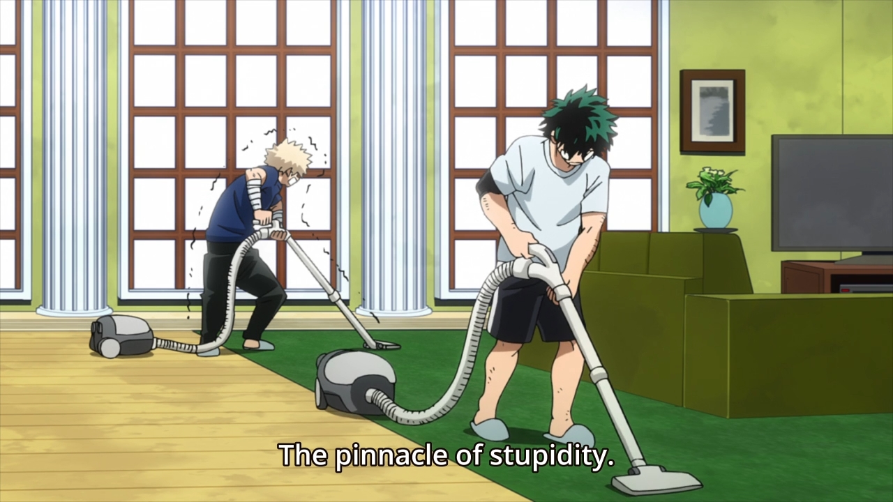 — After the credits, Deku and Bakugo have to clean the dorms while their friends all call them idiots for fighting. Ah well, I think they both got off pretty easy considering the rules they broke. This is kinda nothing.