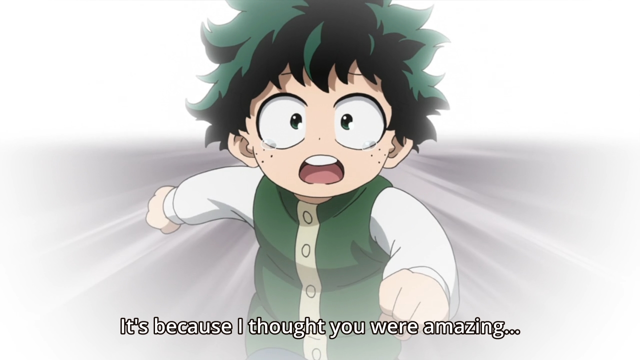 — Deku doesn’t have much to say in return. You’re awesome so I followed you. Cool. Thumbs up to you, kid.