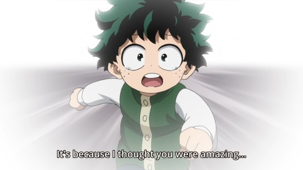 — Also, Deku’s narration as the two kids stare at each other really kills the scene’s momentum. Dude, just fight. You’re killing the mood. Also, it’s the story’s need to spell everything out, which takes away from the drama of the fight.