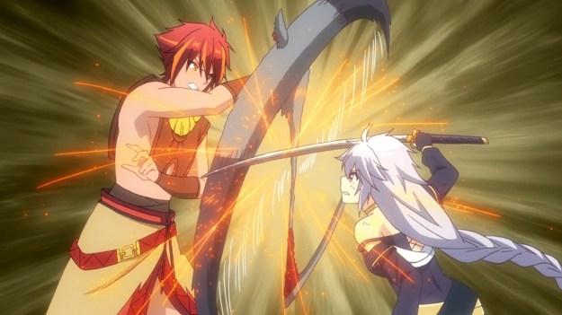 — Sigrun proceeds to beat Steinthor with a trusty katana, because this is anime. Japanese weapons are just badass, man! Much better than a stupid giant hammer that probably weighs a hundred times more than a katana!