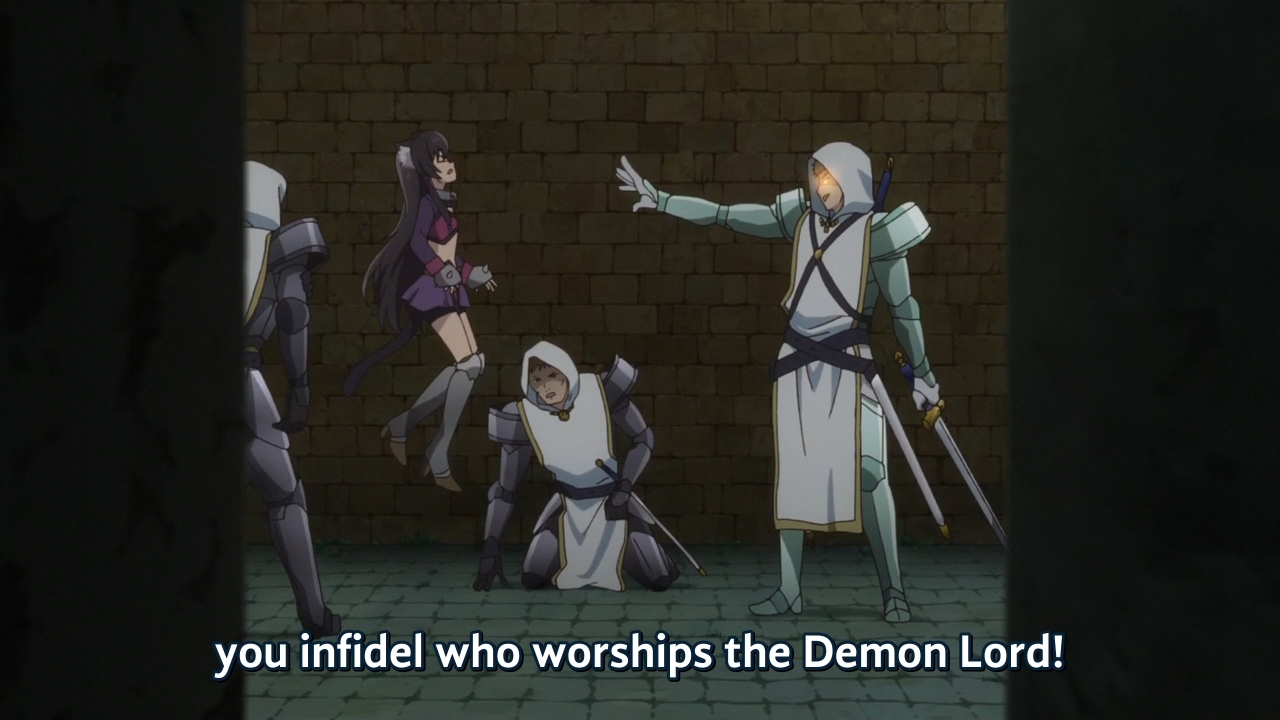 One thing I’d like to note about this last episode is what happens when Diablo is looking for Rem and Klem. He suddenly thinks that rather than look over the whole city on his own, which isn’t working, he could ask for help. This is already not a natural thought for him, as he is a loner who prefers to solve problems on his own. But then, when he knows he’s on a time limit and he goes into the inn, he *can’t ask for help* because he can’t talk to them outside of his Demon Lord persona.