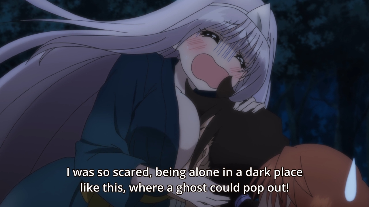 — Anyways, Chisaki gets paired up with Kogarashi, so their plan falls apart right from the get-go. Yuuna also spooks herself, which just seems like an excuse to motorboat the harem lead.