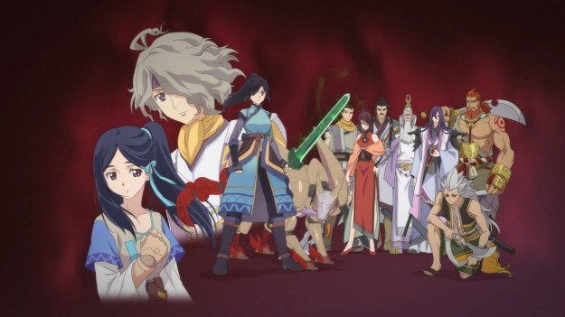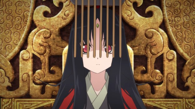Speaking of underdogs, here comes what looks to be another familiar tale about plucky rebels going up against a mighty but cruel empire. I’m told that this show is supposedly based on a Taiwanese role-playing game from 2004. I don’t know a damn thing about Taiwan or its history, but that’s okay, ’cause I doubt this show is going for historical accuracy. I mean, not with these giant death machines all over the place. Yeeeeep, I’m pretty sure those never existed at any point in history. So what is this show about? Wooden constructs going to battle? Is woodpunk even a thing? Well, let’s start from the beginning. Yin, Ning and Zhou all lived in the same village three years ago when the Taibai Empire attacked and tore their peaceful lives apart. Yin and Ning now travel from village to village, working as buskers just to survive. The latter even lost her arms, having to rely on wooden prosthetics to get by. Their luck turns up, however, when Yin somehow stumble upon a magical bracelet that not only allows her to summon a ninja construct who will obey her every command, but also a badass sword that can cleave through the empire’s constructs like butter. Yep, she looks to be our warrior heroine, so Ken En Ken: Aoki Kagayaki at least has that going for it.