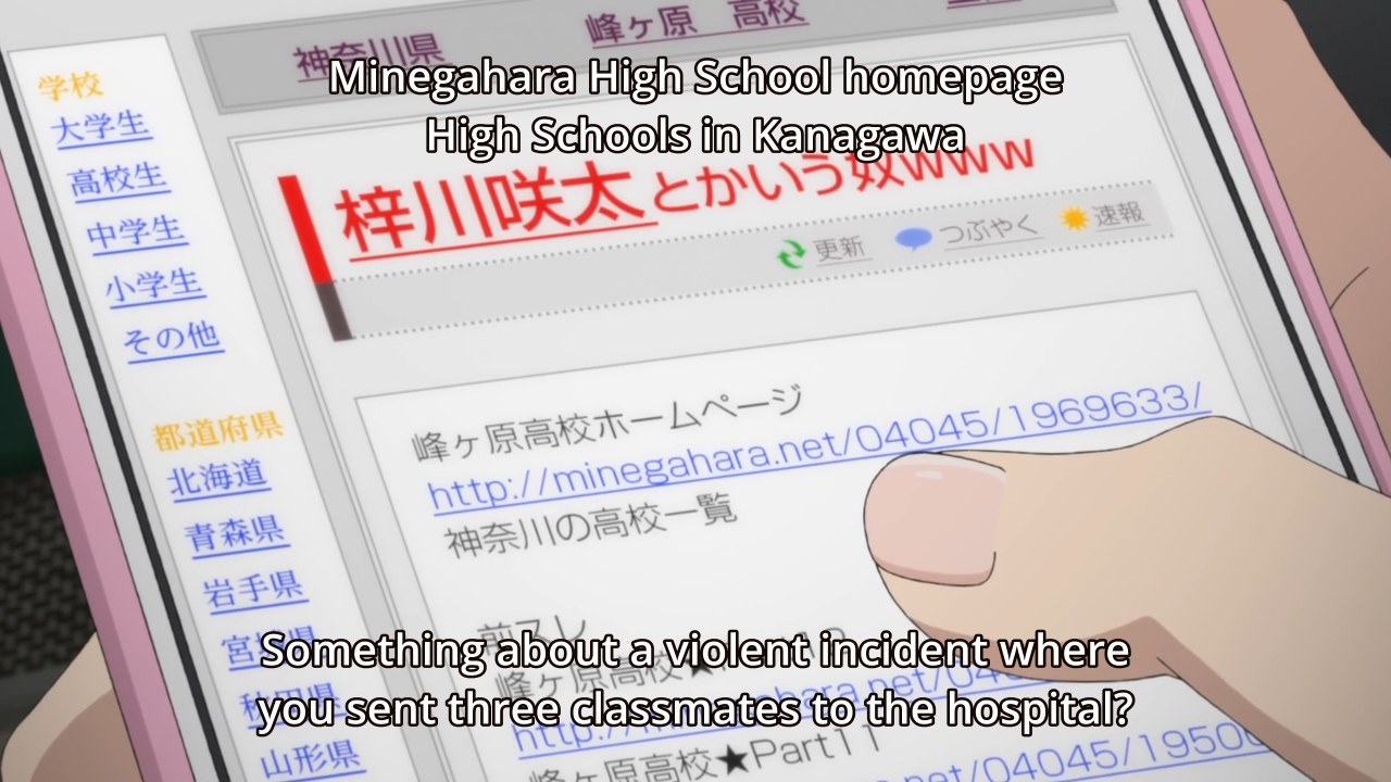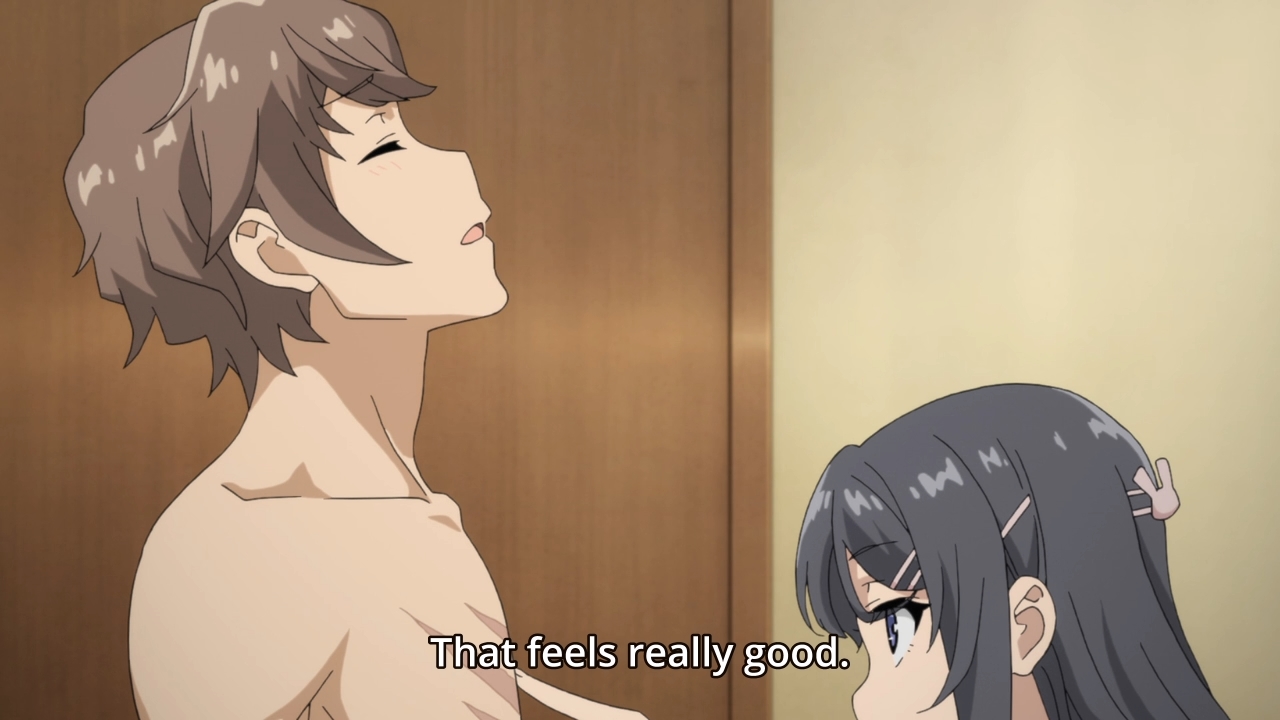 At this point, I may as well throw any speculation at the wall and see what sticks. For example, maybe these kids have latent psychic potential, and they’re inadvertently lashing out against themselves for whatever reason. Mai thinks she wants to disappear, so she literally disappears. She may think she wants people to know acknowledge her, but something is acting as a barrier. They want to acknowledge her as celebrity Mai, not civilian Mai. As for Kaede, maybe she internalized the online bullying that were coming her way, and this physically manifested as actual, literal injuries. It’s not uncommon for bullying victims to end up hating themselves. Hell, it’s almost expected. Fittingly enough, the syndrome only subsided when the girl started staying away from the internet.