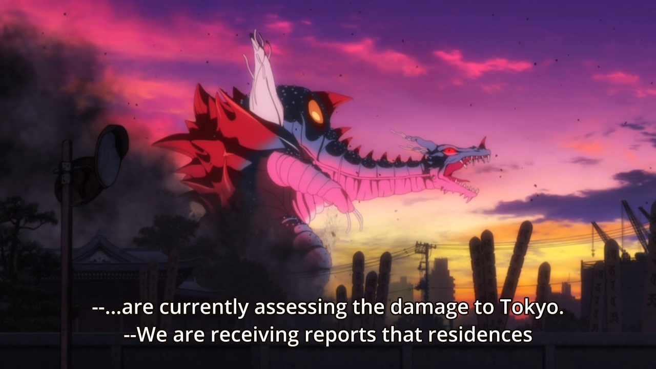 — Anyways, when Yuta tries to show Gridman to Sho, a giant kaiju suddenly terrorizes the city. We’re talking about millions — maybe even billions — of dollars worth of damage. So of course, Yuta and this Gridman is going to save the day. But are you really going to tell me that nobody will die before they get the job done? All this mayhem and destruction, and yet no lives will be lost?