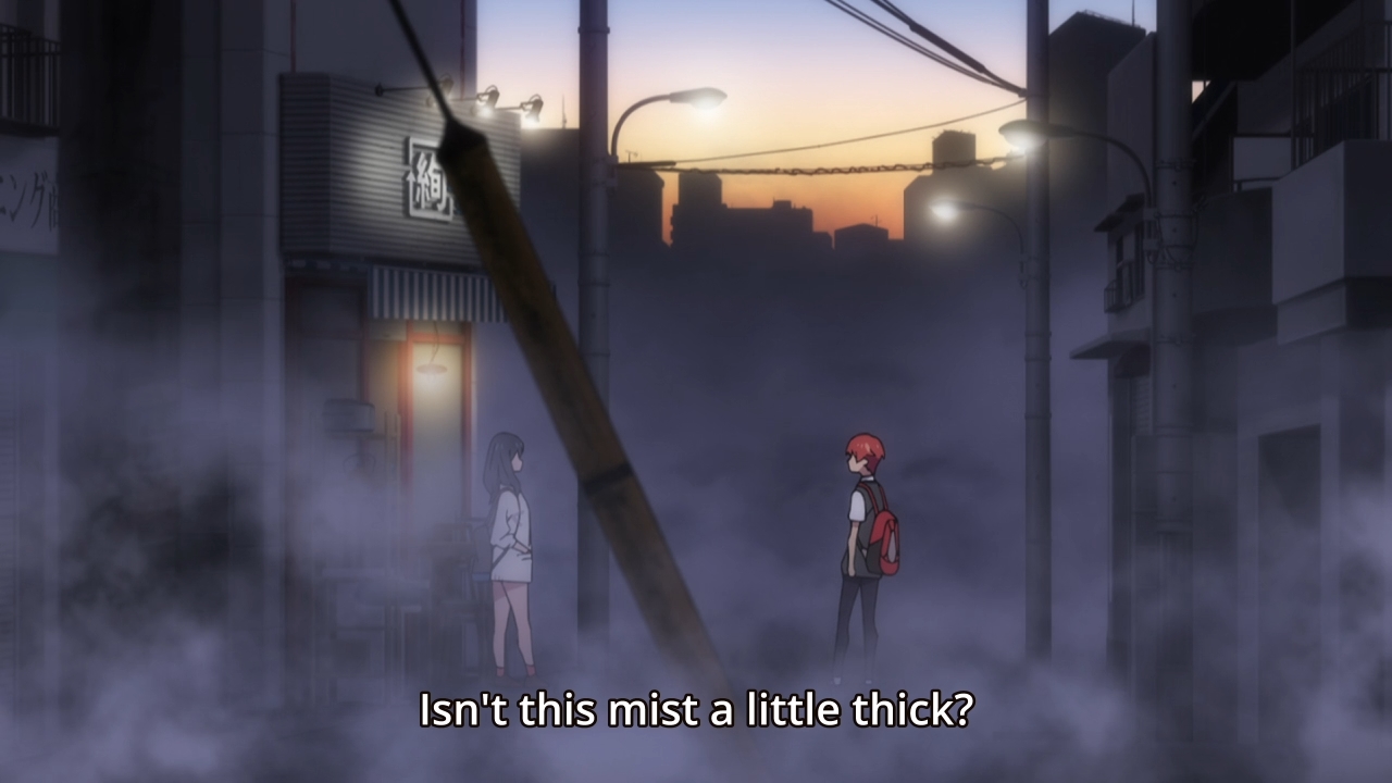 — The kid can also see and hear things that no one else can. Things like, well, Gridman on one of Rikka’s really old computers (her mother runs a junk shop) and a giant kaiju looming over the city. Oh yeah, he can also see a thick mist that no one else can see. I wonder if this is a portent of some kind.