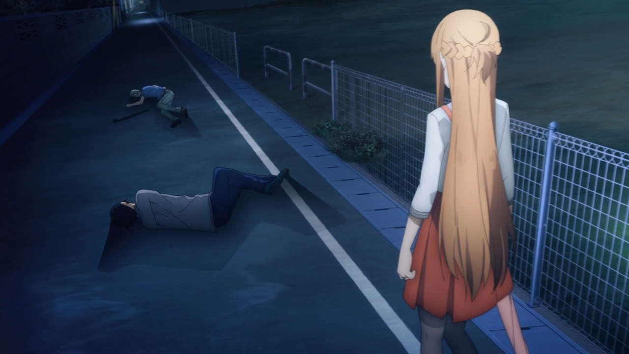 — Quick side note: Sinon is not so scared of guns anymore. Great. Exposure therapy works… kinda. Also, she tells us that her almost rapist is doing okay. We care about the bad guy because…?