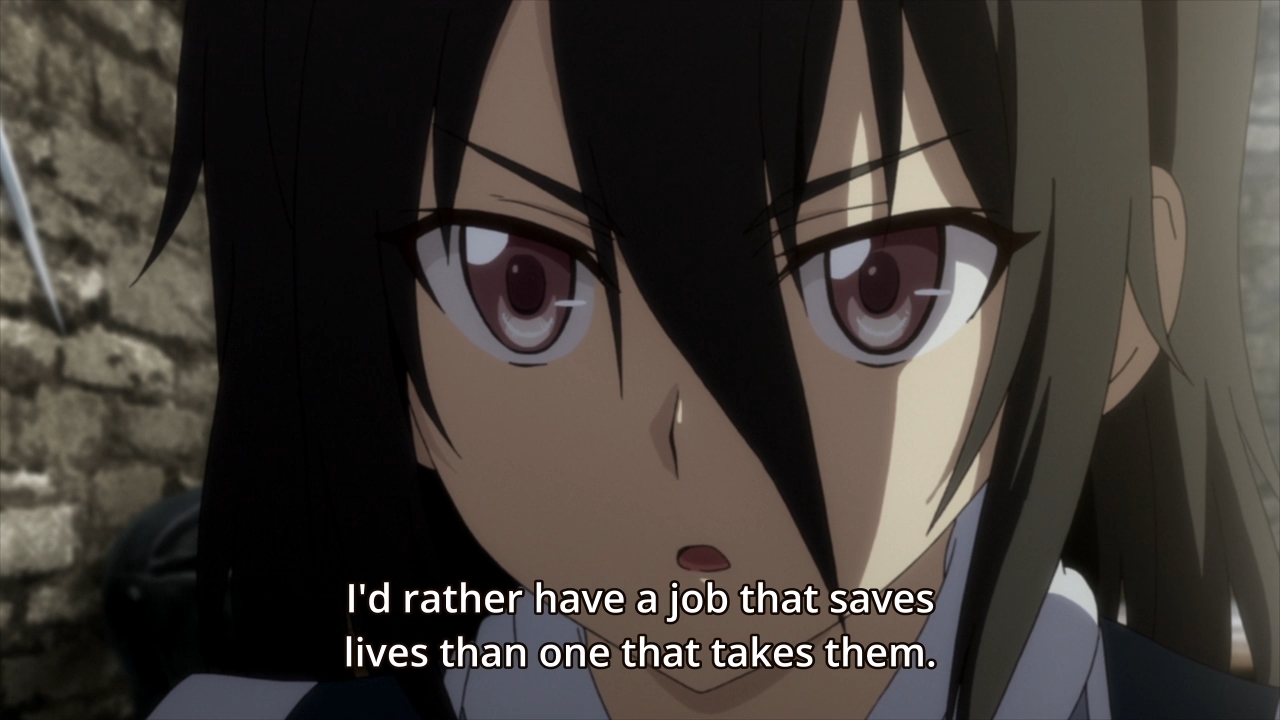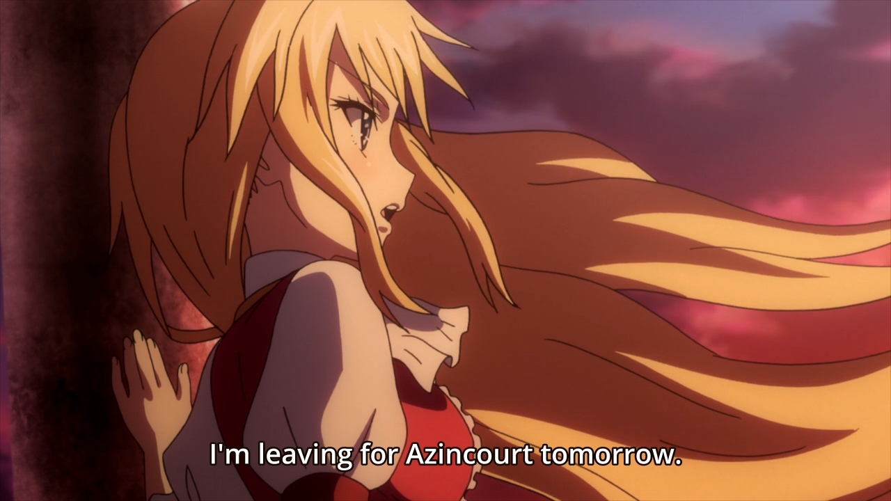 Anyways, the first episode takes its sweet time setting the stage. As a result, I’m going to skip talking about, like, a good 60% of it. You’re not really missing anything but some very basic characterization. We’re introduced to Montmorency, who is supposed to be a knight but he’s much more interested in the forbidden art of alchemy. He’s also a typical do-gooder. He’s flanked by a bunch of classmates who all seem to have a crush on him (of course). Montmorency and his girls promise to remain friends forever, which is a sure sign that tragedy is about to strike. Good ol’ predictable storytelling. Anyways, there is also that neverending war between France and England, which figures to be the main conflict that will drive this entire narrative. As a result, Montmorency’s friend Richemont (she’s a girl but her first name is Arthur?) is compelled to join the battlefield. He tries to rescue her, but by the time he gets to Azincourt, the battle has already been lost and the girl is nowhere to be found. There’s no doubt that she’s been taken prisoner. Let’s just hope that her captors aren’t too cruel.