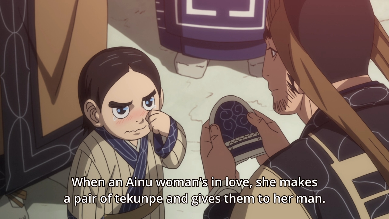 — Speaking of Asirpa, Tanigaki is now on a mission to make sure she’s safe. Why? ‘Cause Inkarmat, that shady fortune teller, showed up to the village and started talking about how someone (Kiroranke) is going to betray the girl. Since Tanigaki is the best man for the job, he has to say his goodbyes to the Ainu village. Apparently, Osoma really, really likes him. Hm.