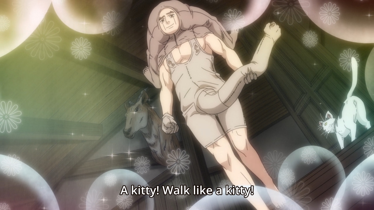 So yeah, that’s the episode in a nutshell. Golden Kamuy is just kooky. For instance, Edogai should be creepy, but they play him off as comic relief instead. Welp, okay, whatever. He’s just another silly character to add to the story’s ever-growing cast of weirdos. Golden Kamuy was relatively exciting when it first started, ’cause I really thought that this would turn into a rat race for the hidden cache of Ainu gold. Unfortunately, I should’ve realized that the author would try and milk this story for as long as it’s profitable.